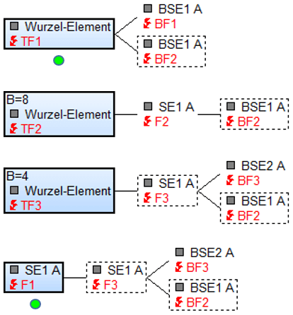 - TF1, TF2 und TF3 sind drei im Wurzelelement verankerte Topfehler (TF) der zuvor aufgezeigten Struktur. TF