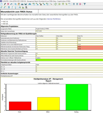 Die Harmonisierung 2019 erfordert für Schritt 7 die Erstellung eines „FMEA-Berichts“. Dementsprechend hat APIS ein neues IQ-Formular eingeführt: den Management-Report (Extras | Formulare/Reports| Management-Report).